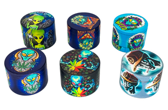 2.5″ 4 layer metal grinder full printing alien